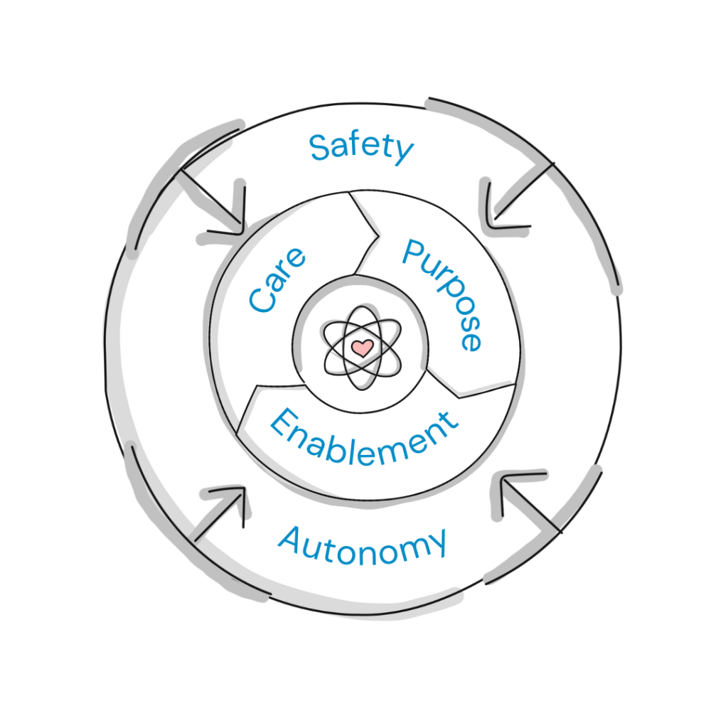 Think of it like a relationship. You don’t start by asking someone to be vulnerable (enablement). First, you create safety. Then autonomy. Then care. Then shared rituals (purpose). Then growth (enablement).